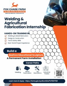 Gain hands-on experience in welding and metal fabrication while contributing to the creation of a permanent educational installation on the farm. Interns will help design and build a custom Bee Hive sculpture that supports pollinator education and community engagement.