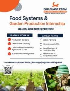 Fox Chase Farm’s internship program offers hands-on experience at a working educational farm serving more than 62,000 students annually across 60 schools in the School District of Philadelphia.
